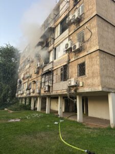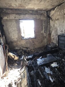 עשן שחור סמיך בחדר המדרגות חדר לאחת הדירות.