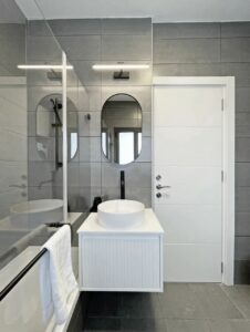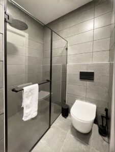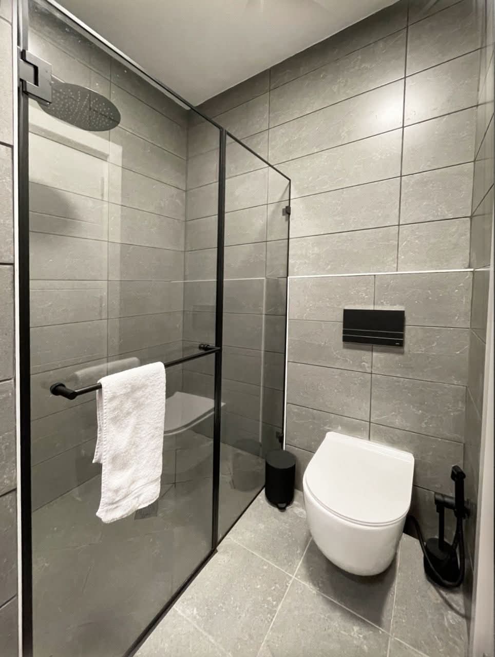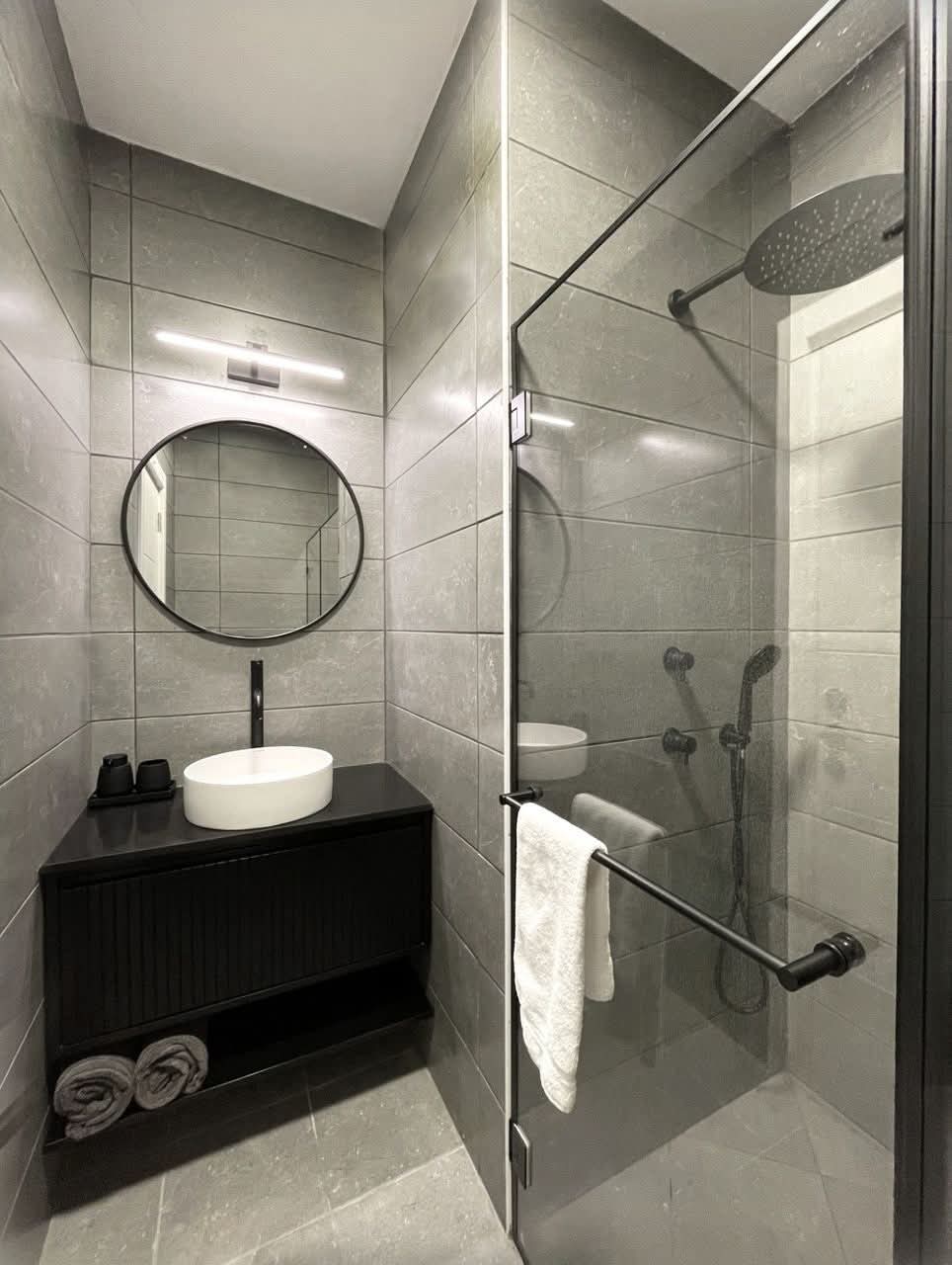 ✔️ יחידת הורים מפנקת עם מקלחת ענקית וראש גשם, אריחים עד התקרה, בידה וכיור מונח של מיטרני.