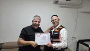 במהלך המפגש המרגש משפחת אלאלוף אף העניקו תעודות הוקרה לניר דורפמן על פועלו הרב למען הצלת חיים.