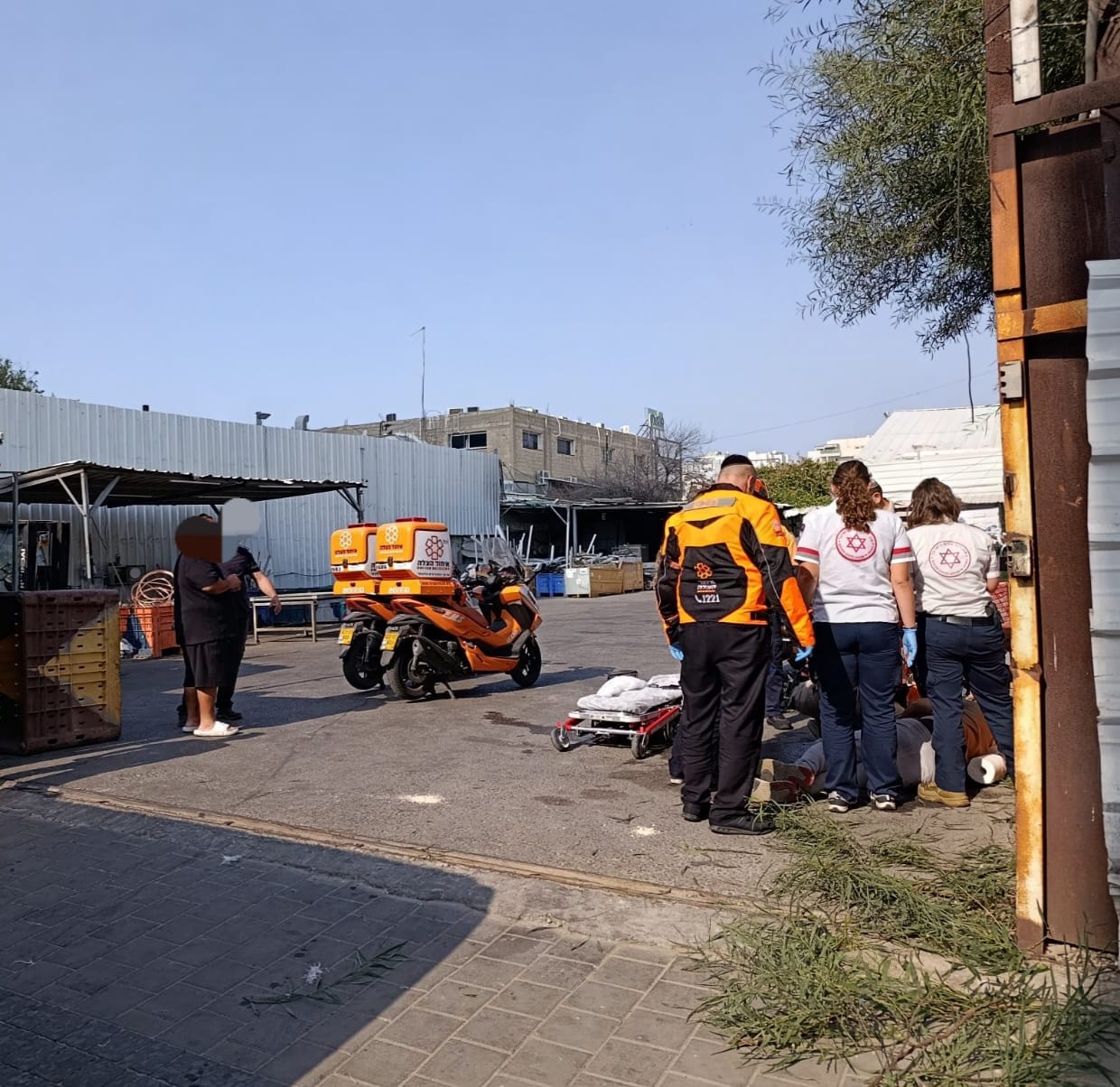 שמואל משולם, יצחק ומירב מוגרבי (בעל ואישה) חובשי איחוד הצלה מסרו: "נמסר לנו בזירה כי הוא נפל מגובה תוך כדי עבודתו ובעקבות כך נחבל בראשו ובגפיו. הענקנו לו סיוע רפואי ראשוני בזירה ולאחר מכן הוא פונה לבית החולים איכילוב במצב בינוני".