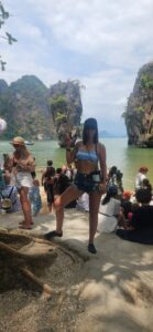 עוד לפני ארוחת הצהריים, אנחנו מגיעים לשיא: האי קאו פינג קאן (Khao Phing Kan). ירדנו מהספינה כדי לבקר בנקודת התצפית המפורסמת המשקיפה על ה-"קו טאפו" – סלע הגיר האייקוני שהתפרסם בסרט "האיש עם אקדח הזהב". זו ההזדמנות לתפוס את התמונה הכי מפורסמת של הטיול.