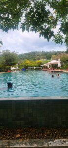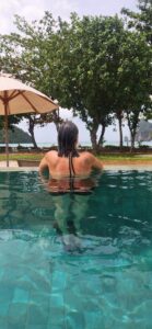 * בוקר בבריכה: בילינו את השעות המוקדמות בטבילה בבריכות המפנקות של המלון. יש משהו קסום בלשחות כשהמצוקים האדירים של אאו-נאנג משתקפים במים.