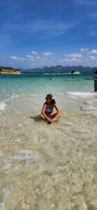 יוצאים לדרך והתחנה הראשונה היא אי קסום עם רצועת חוף לבנה. זה המקום המושלם "לנחות" לתוך האווירה של החופש, לשחות במים הצלולים וליהנות מהשקט של הבוקר לפני שמגיעים לאזורים המתויירים יותר.