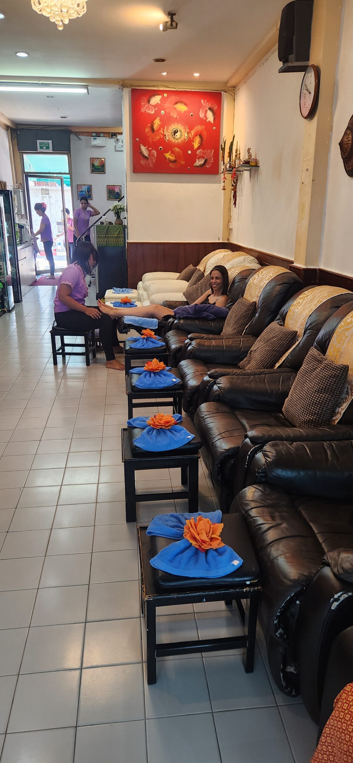 אחרי הסיבוב בחוף, הגיע הזמן לפינוק אמיתי. נכנסנו לסמטת המסאג'ים שבעלי הכיר מהתקופה הארוכה שהוא טייל במזרח (שהיה עוד רווק), ומצאנו את Original One Massage.
