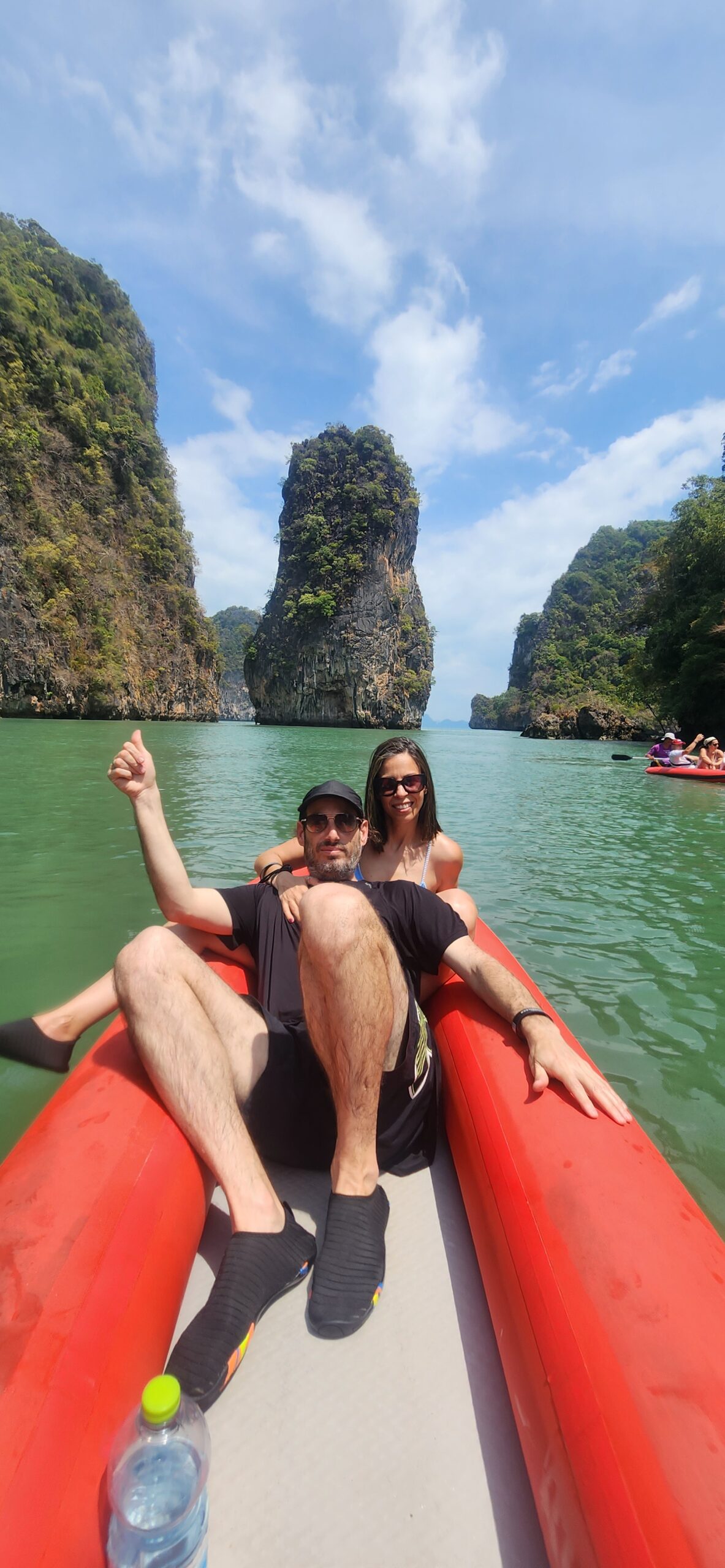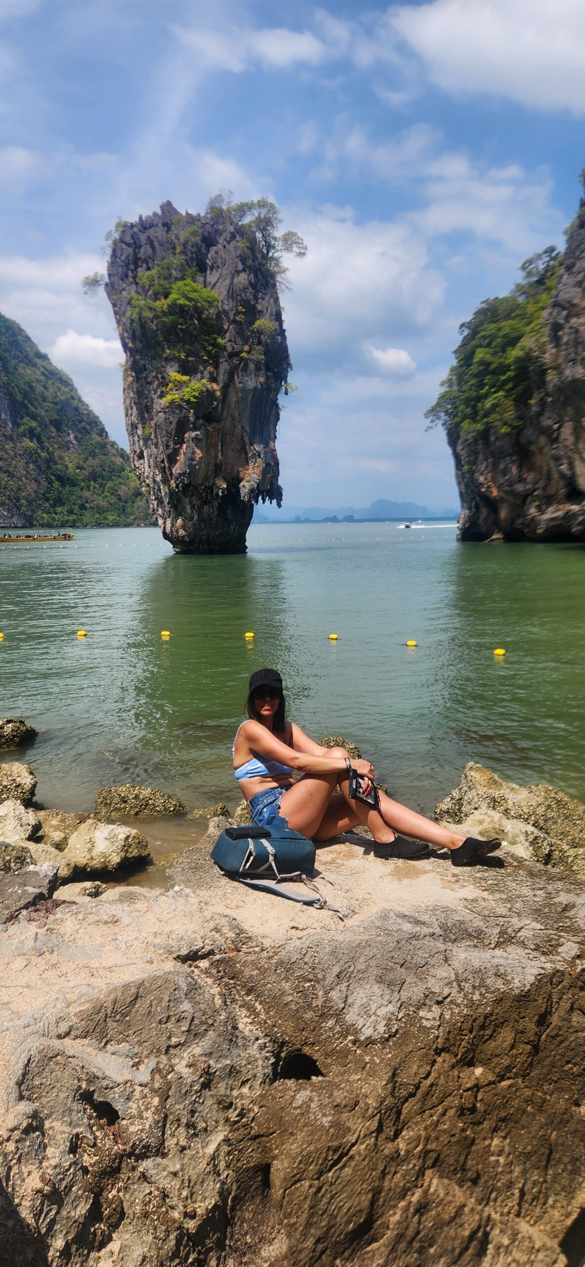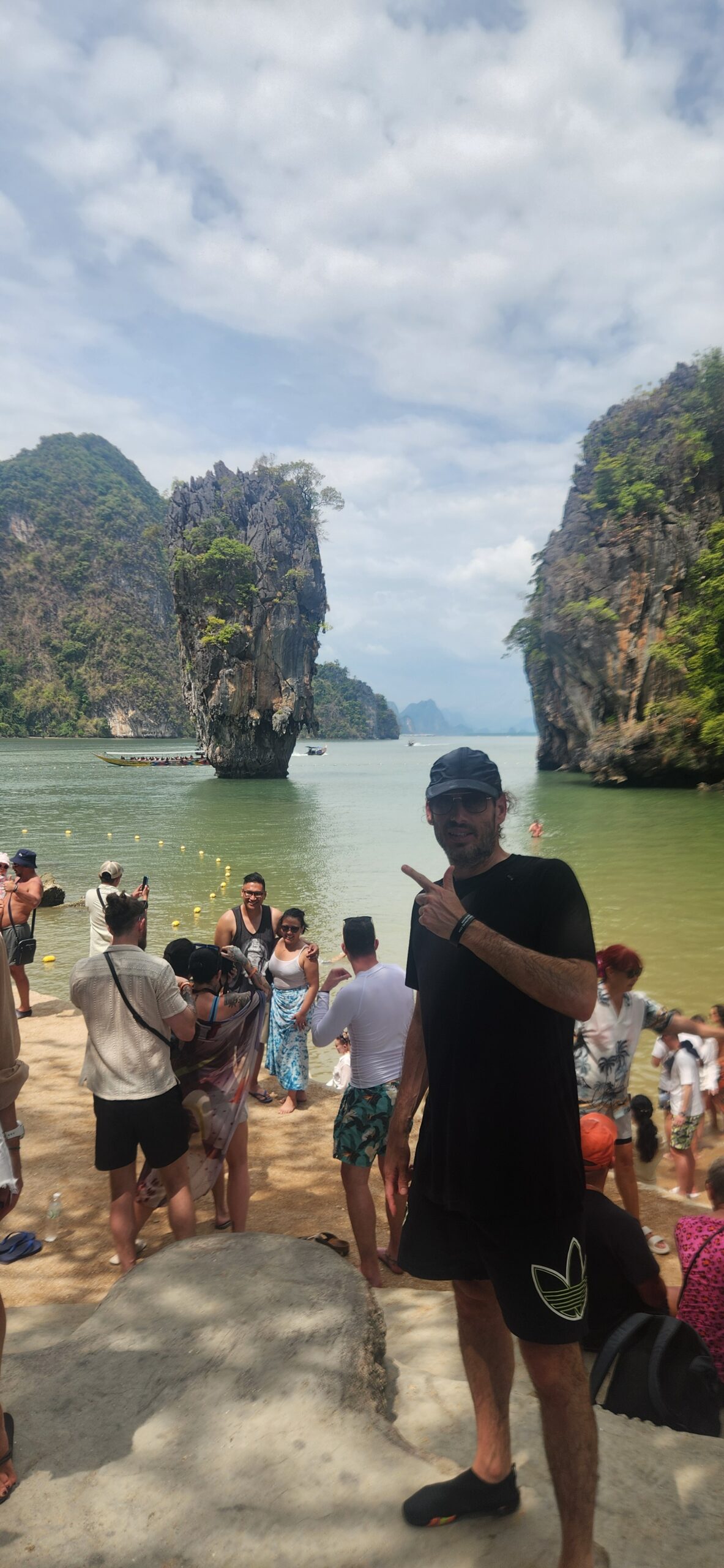 עוד לפני ארוחת הצהריים, אנחנו מגיעים לשיא: האי קאו פינג קאן (Khao Phing Kan). ירדנו מהספינה כדי לבקר בנקודת התצפית המפורסמת המשקיפה על ה-"קו טאפו" – סלע הגיר האייקוני שהתפרסם בסרט "האיש עם אקדח הזהב". זו ההזדמנות לתפוס את התמונה הכי מפורסמת של הטיול.