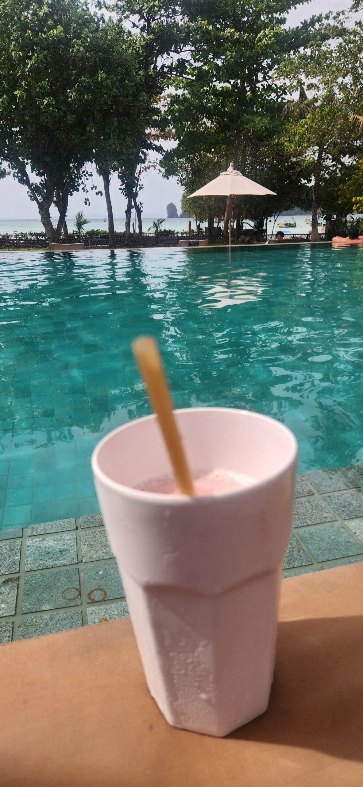 בצהריים חזרנו לאי להוריד הילוך. אחרי כמה שעות בים, אין כמו לשבת על שפת הבריכה עם שייק פירות טוב.