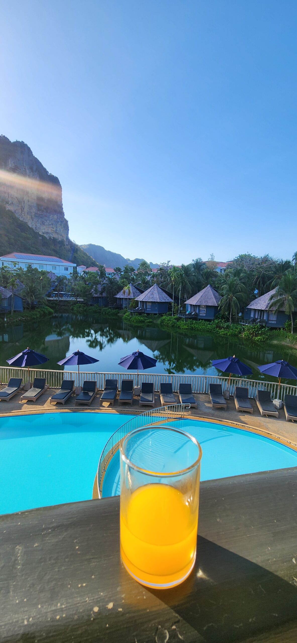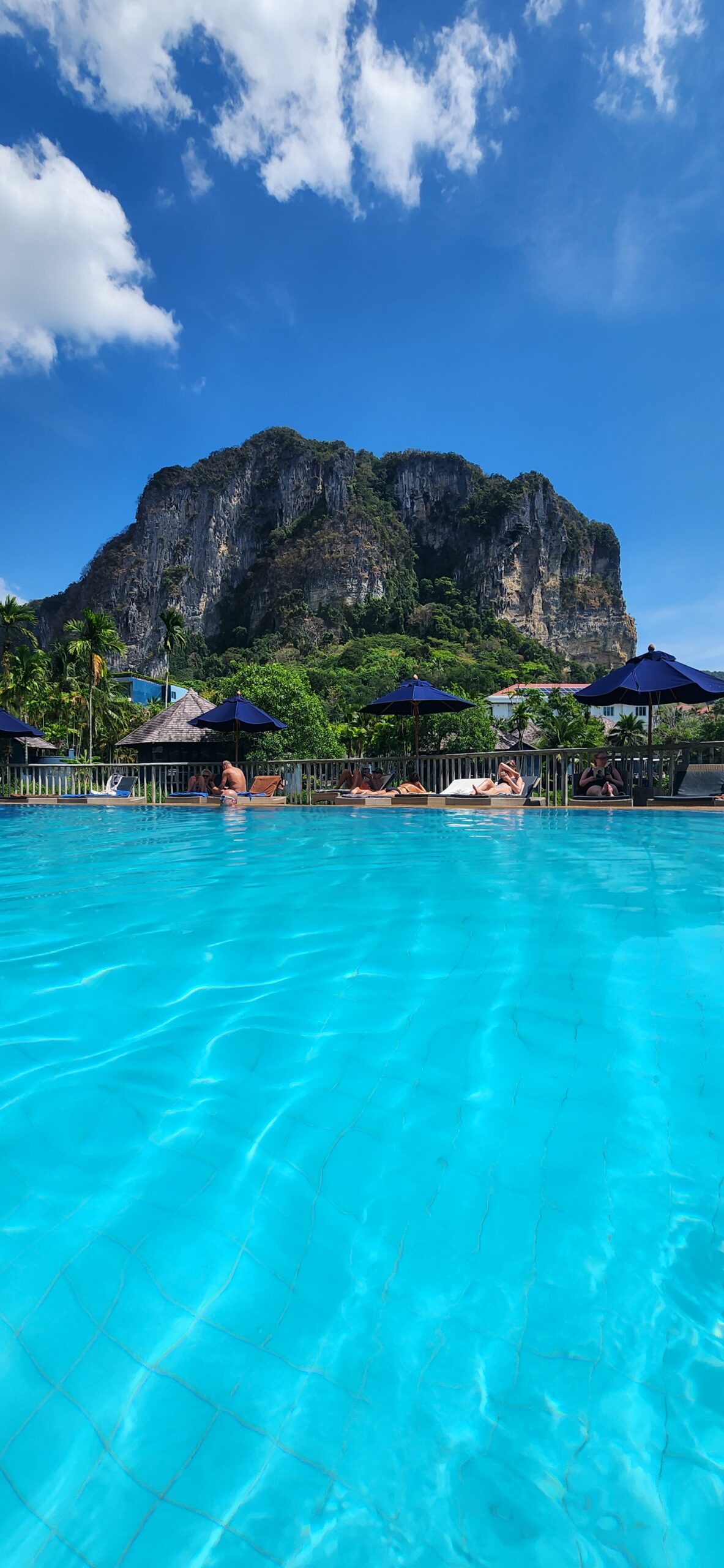 * בוקר בבריכה: בילינו את השעות המוקדמות בטבילה בבריכות המפנקות של המלון. יש משהו קסום בלשחות כשהמצוקים האדירים של אאו-נאנג משתקפים במים.