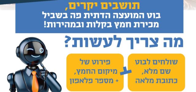 המועצה הדתית בת ים נערכת לחג הפסח ומנגישה את שירות מכירת החמץ לתושבים: בוט ידידותי יאפשר לכם להסדיר את המכירה במהירות, ללא צורך לצאת מהבית.