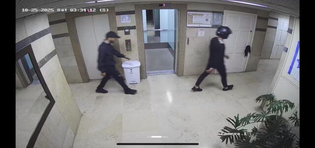 בשעות הלילה המאוחרות, בסביבות השעה 3:30, פרצו שני גנבים לחניון בבניין ברחוב אוסקר שינדלר בבת ים. השניים הצליחו לפרוץ את דלת הכניסה ולגנוב רכוש פרטי מתוך החניון – כל זאת בזמן שהתושבים ישנו בבתיהם.