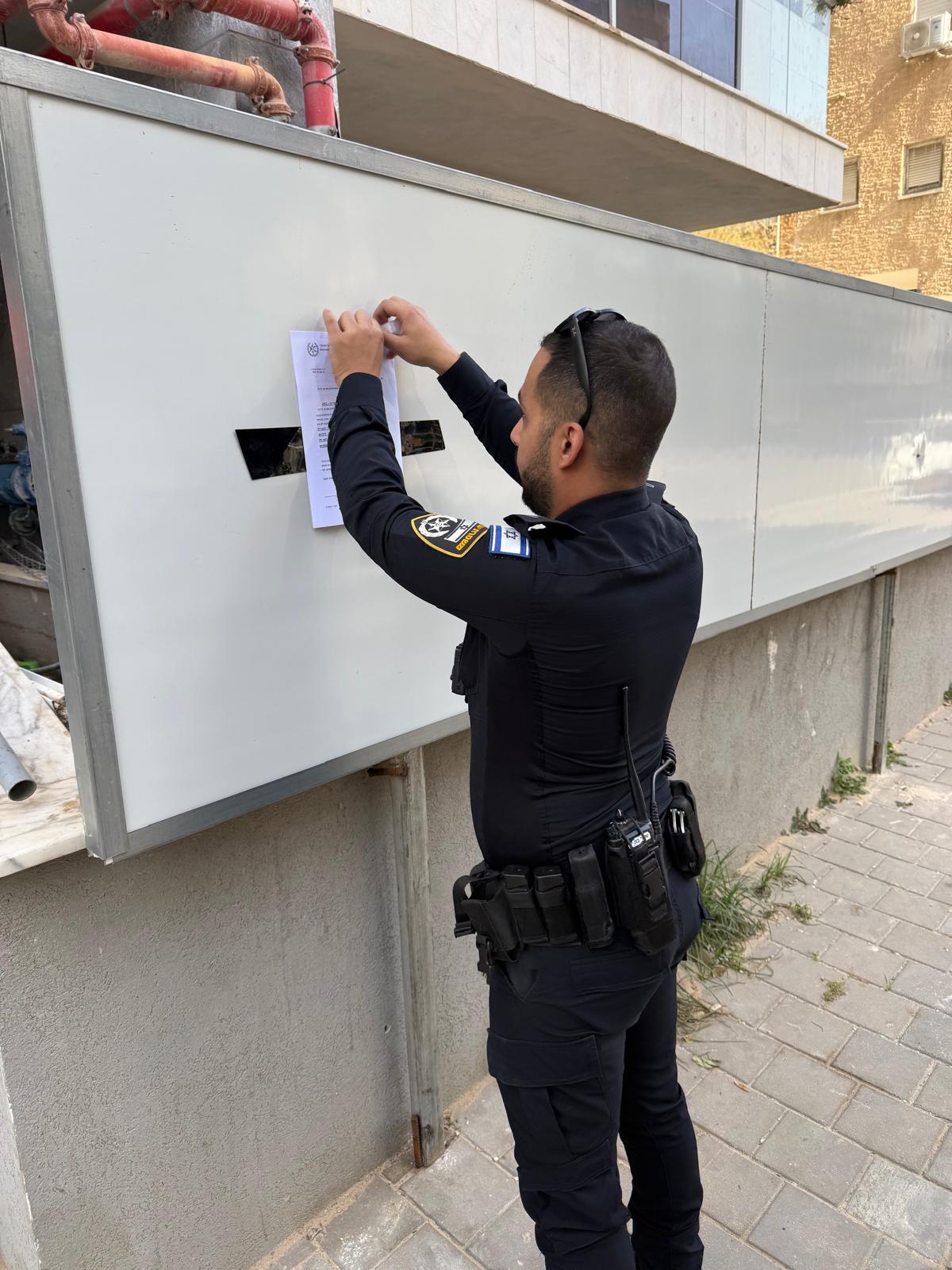 *מפקד מחוז תל אביב, ניצב חיים סרגרוף, חתם על צו סגירה לאתר בניה ברחוב הנביאים בבת ים, לאחר ששוטרי משטרת בת ים עצרו במקום שוהה בלתי חוקי שהועסק ולן במקום.*