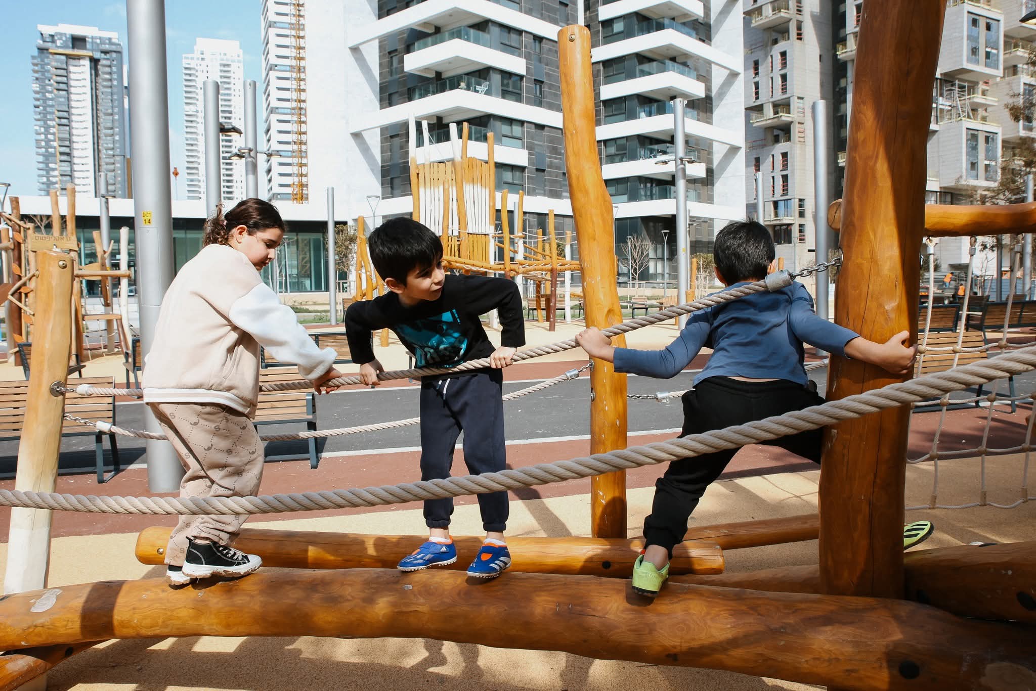 בין אזעקה לאזעקה, הצוותים הנפלאים שלנו הרימו לכם גן שעשועים גדול ויפה בפארק הים, עם מתקני עץ חדשניים ופינות ישיבה נהדרות.