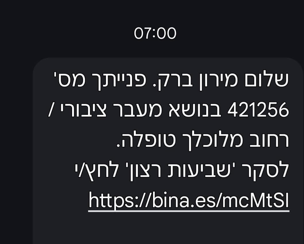 למרות שדיווח למוקד העירוני ואכן קיבל אישור שהקריאה הועברה ונמסר שהמפגע טופל, מירון חזר לבדוק – וגילה שהמצב בשטח לא השתנה. "לא מדובר בלכלוך חדש. גם החרא – ישן", כתב בתסכול.