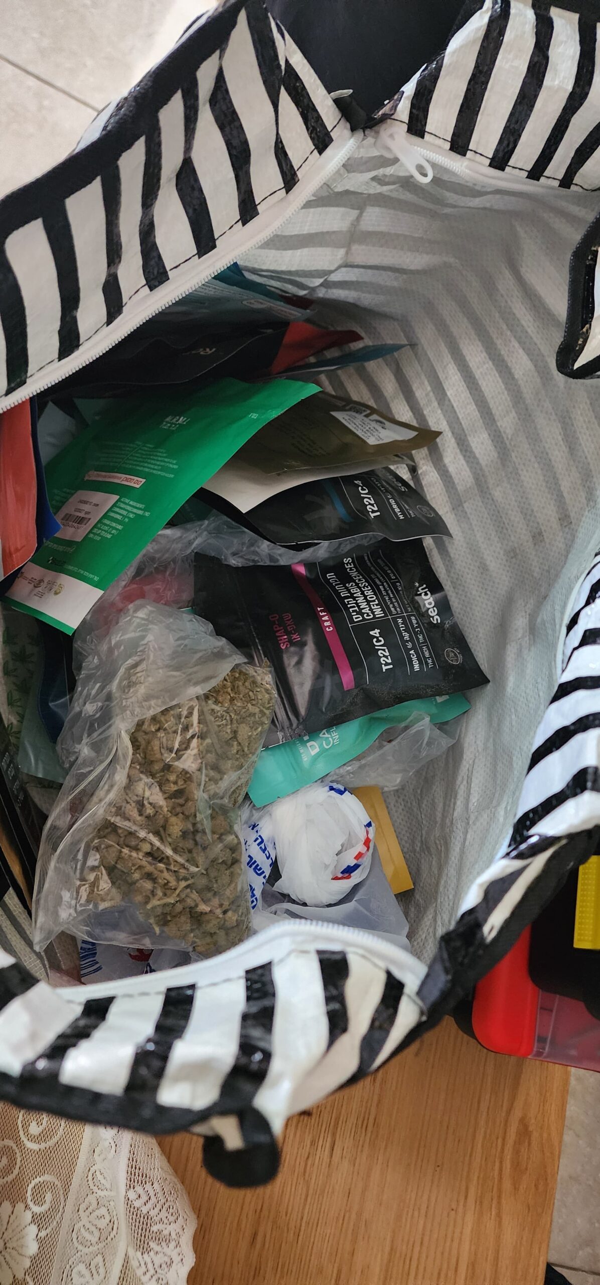 במהלך החיפוש נתפסו חומרים החשודים כסמים, כשהם ארוזים, מחולקים ומוכנים להפצה מיידית, ובהם: