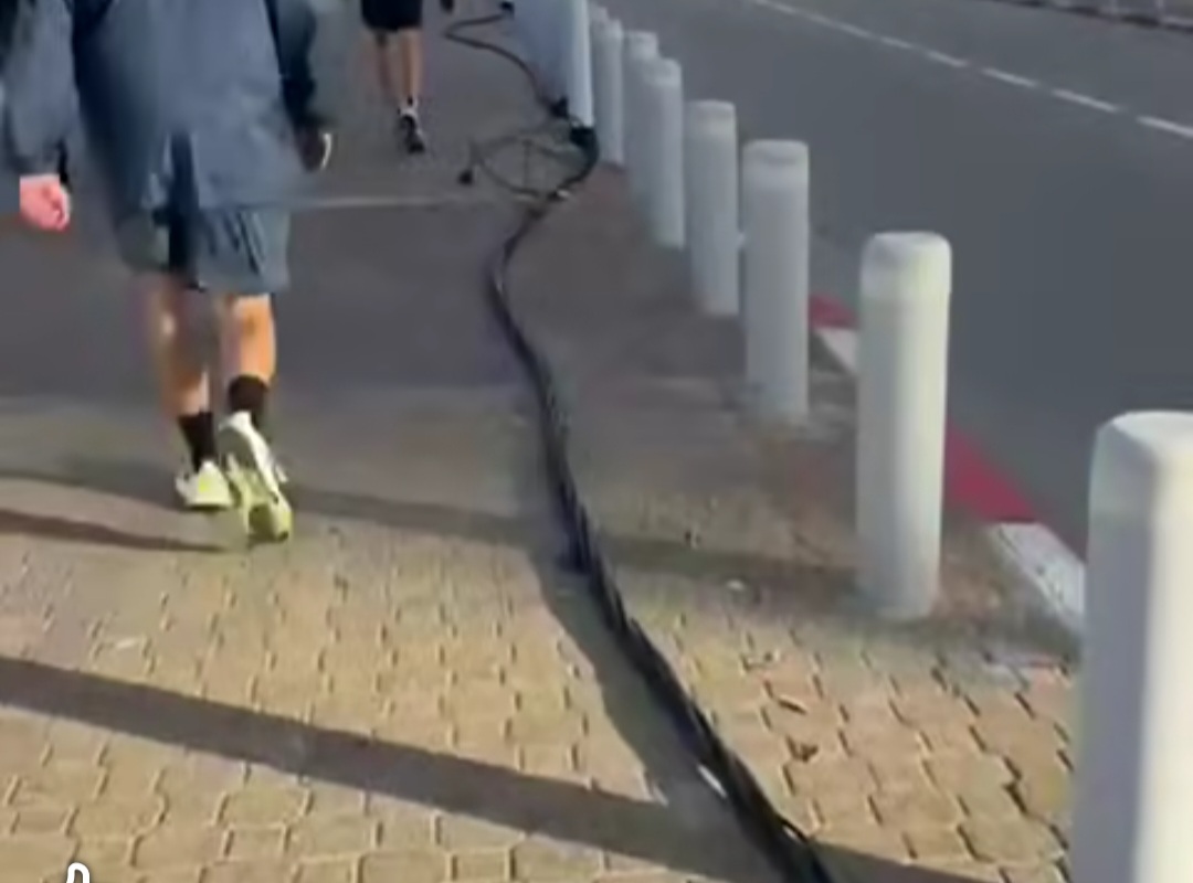 התושבים ממשיכים לעבור במקום – הולכים, רצים ורוכבים – כשסכנת התחשמלות מרחפת באוויר.